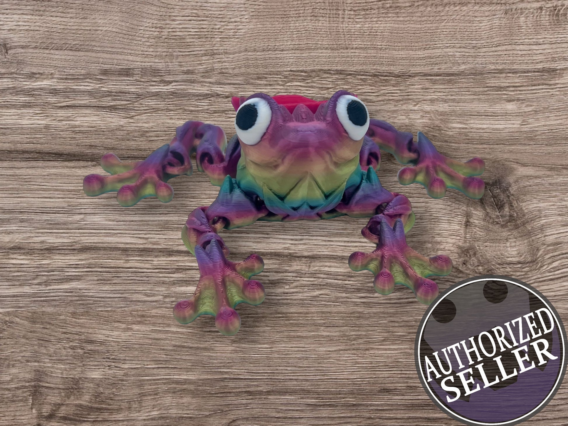 Introducing the whimsical 3D Printed Rose Frog! Lovingly crafted with precision and care, this little amphibian friend is sure to bring a pop of fun and color to your day. Articulated limbs let you pose your frog in a variety of playful positions, while vibrant colors add a splash of whimsy to its intricate design. Perfect for desk decoration or as a delightful gift, this 3D printed marvel combines technology and artistry to bring a smile to your face. Get ready to hop into the world of 3D printing with the charming Rose Frog!
